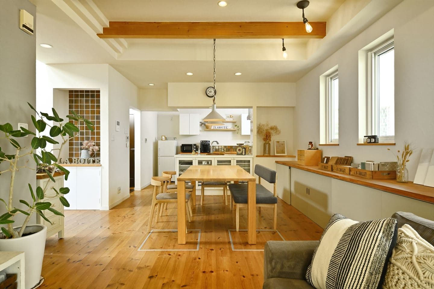 無垢床材や珪藻土などの自然素材による味わいのある素材感。優れた外断熱工法による快適で心地よい空気感。新しいライフスタイルを想像させるおしゃれなインテリア。