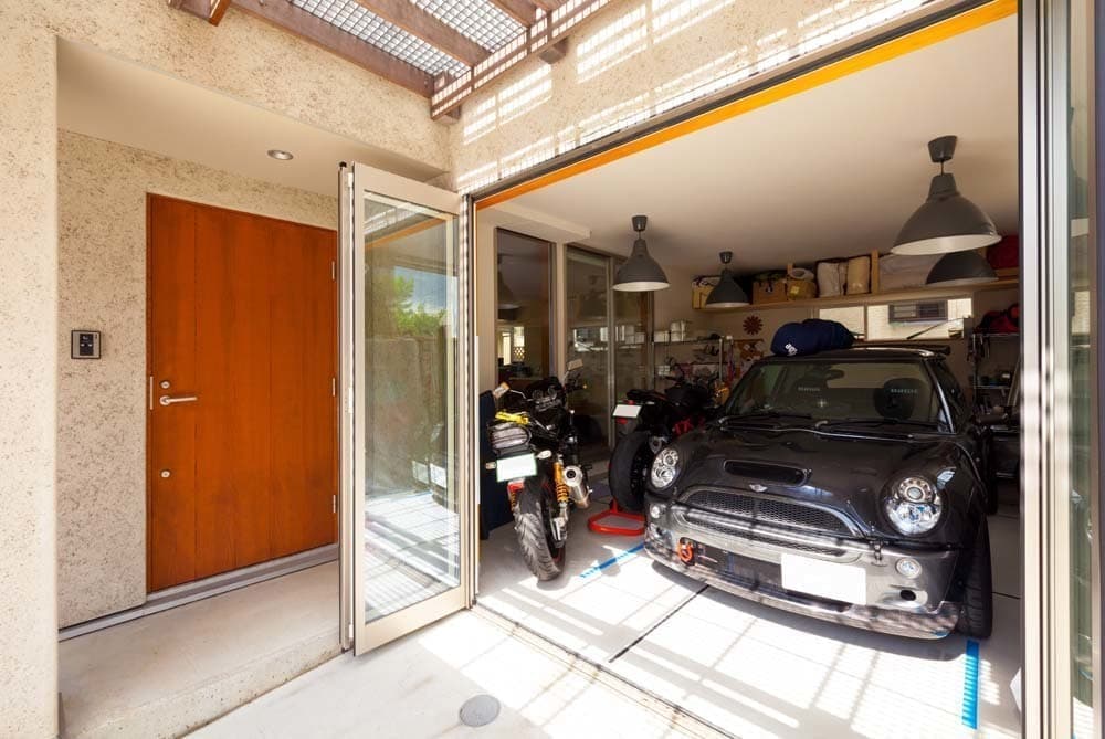 リビングと2階のお子様用のフリースペースをつなぐ大きな吹抜け、LDKから見えるビルトインガレージは、ご主人様の趣味のスペースです。