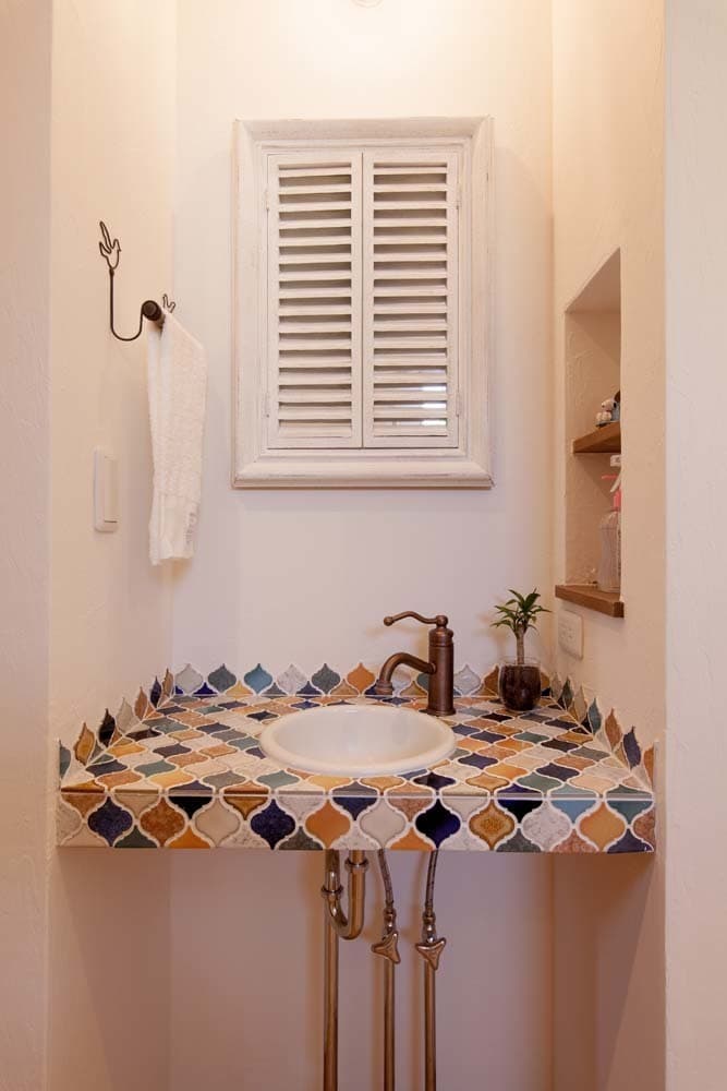 洗面台や玄関収納の扉、キッチンまわりもオリジナル造作で仕上げているので、カスタマイズ感満載の家となっています。