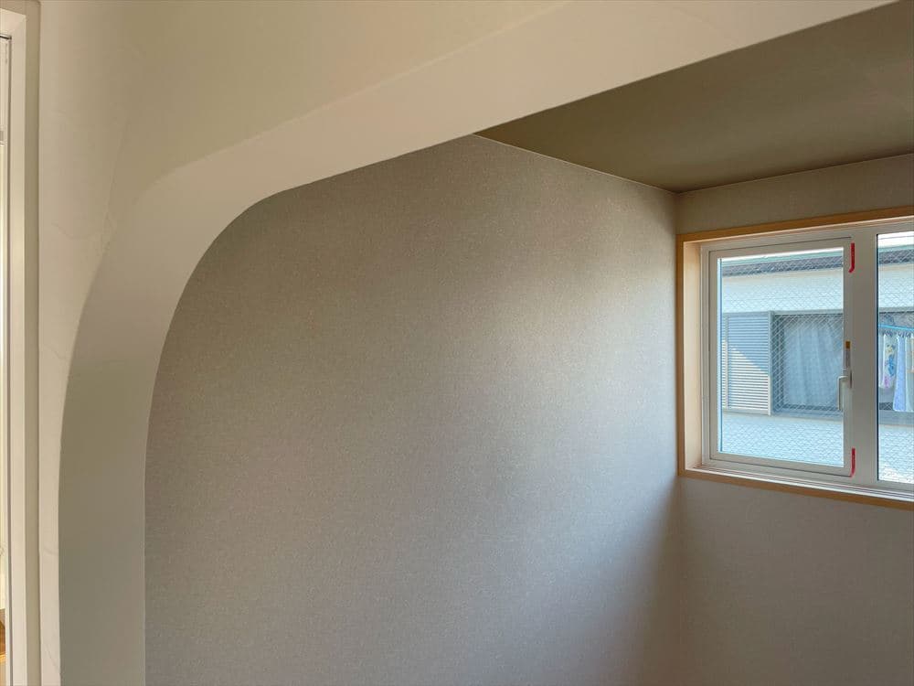 LDKのある2Fに上がると、下がり壁をアーチにした畳コーナーが目の前に現れます。