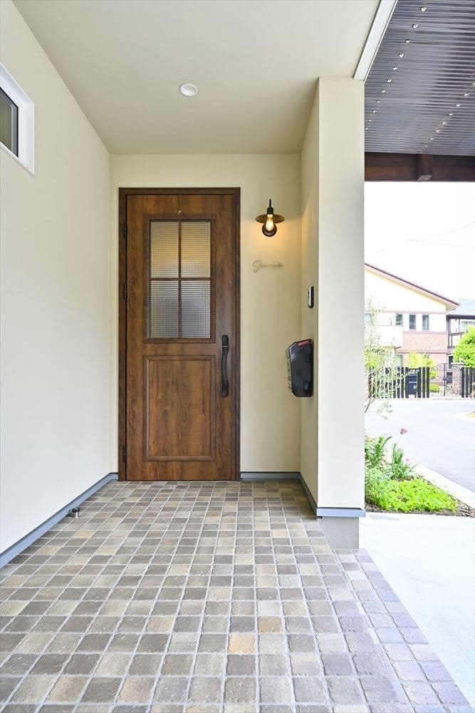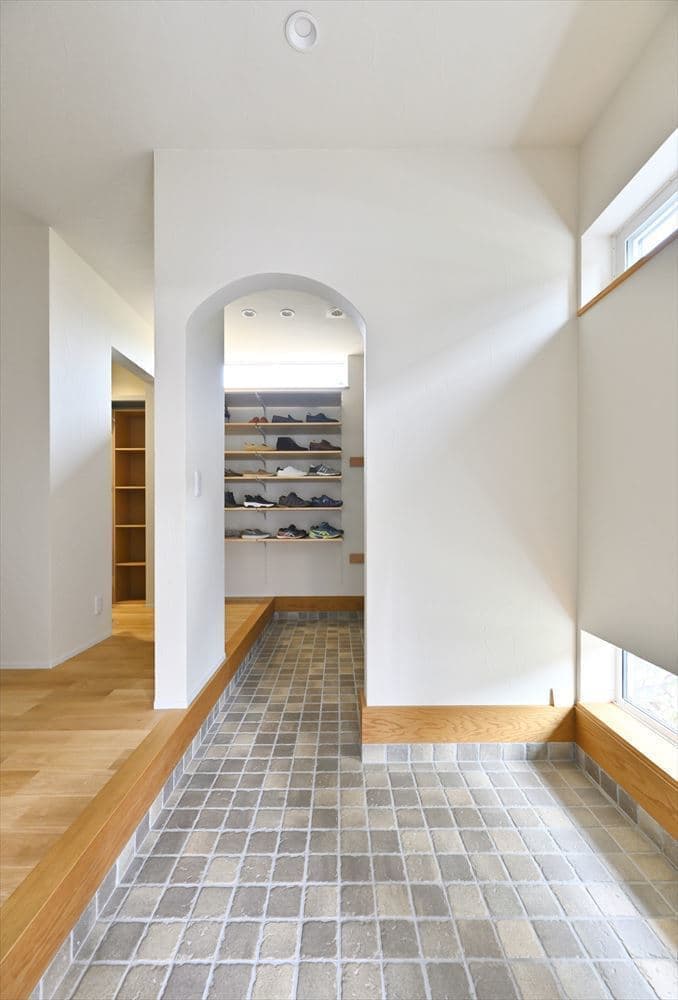 玄関から奥のウォークインクロークまで同じタイルで仕上がり、奥からそのまま家の中に入れるように動線計画も使いやすさを意識したプランニングです。