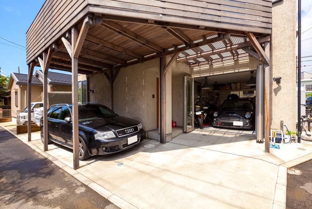 リビングと2階のお子様用のフリースペースをつなぐ大きな吹抜け、LDKから見えるビルトインガレージは、ご主人様の趣味のスペースです。