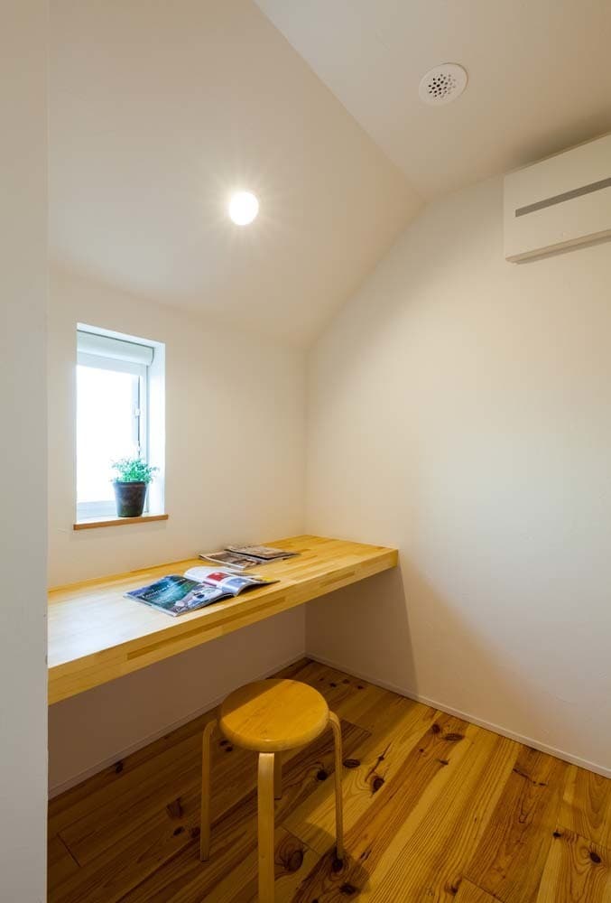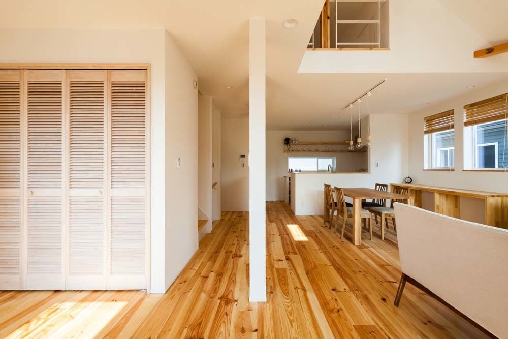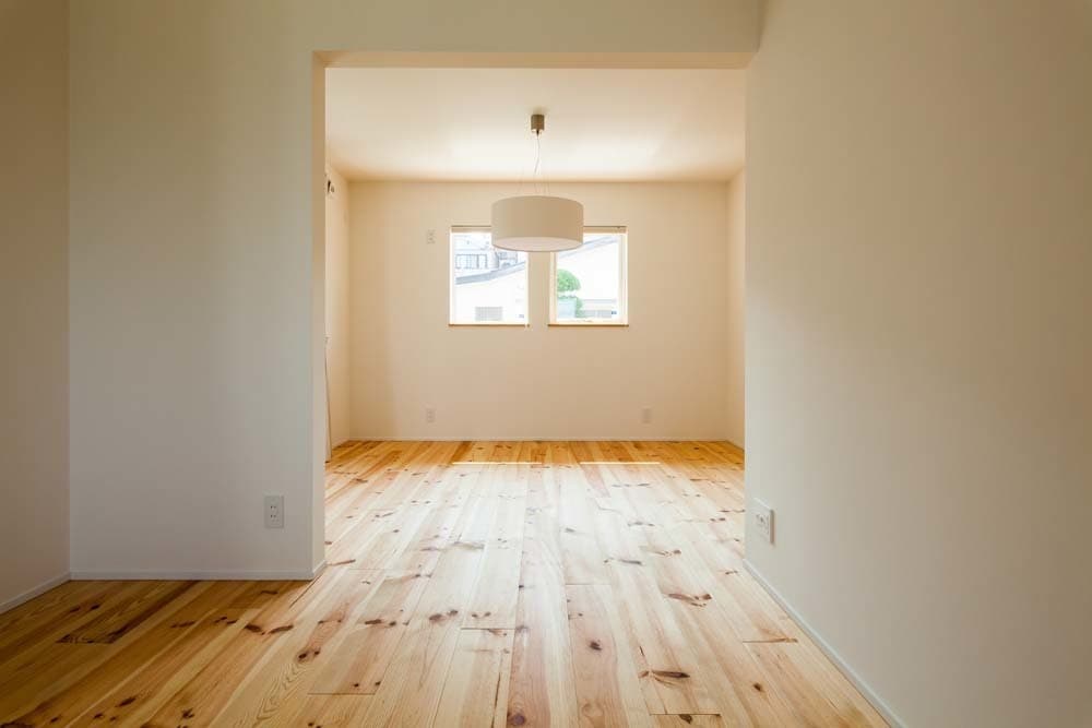 ボルドーパインの無垢床と珪藻土の塗り壁の優しいナチュラルなテイストも、ラボワットが提案する優しい木の家の代表作でもあります。