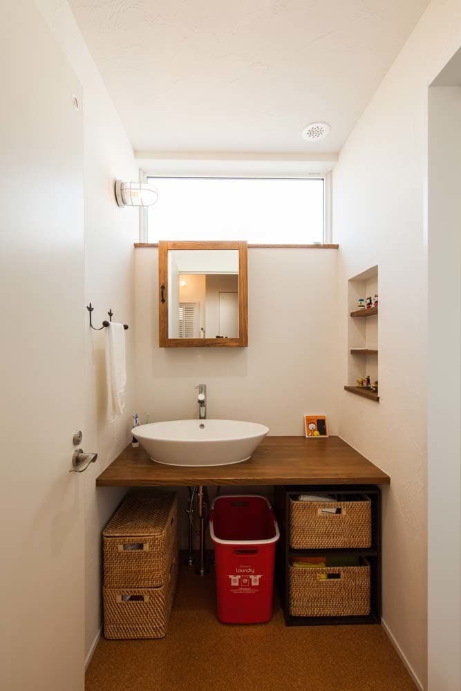 洗面台や玄関収納の扉、キッチンまわりもオリジナル造作で仕上げているので、カスタマイズ感満載の家となっています。