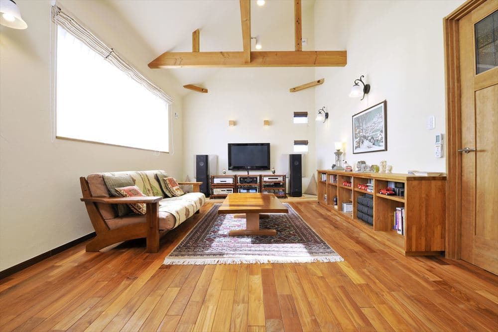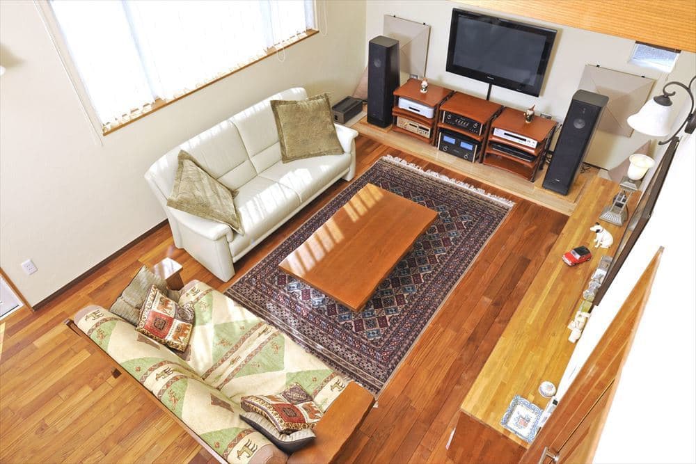 勾配天井で気持ちの良い2Fのリビングで、音楽を聞きながらのティータイムは贅沢な時間ですね。