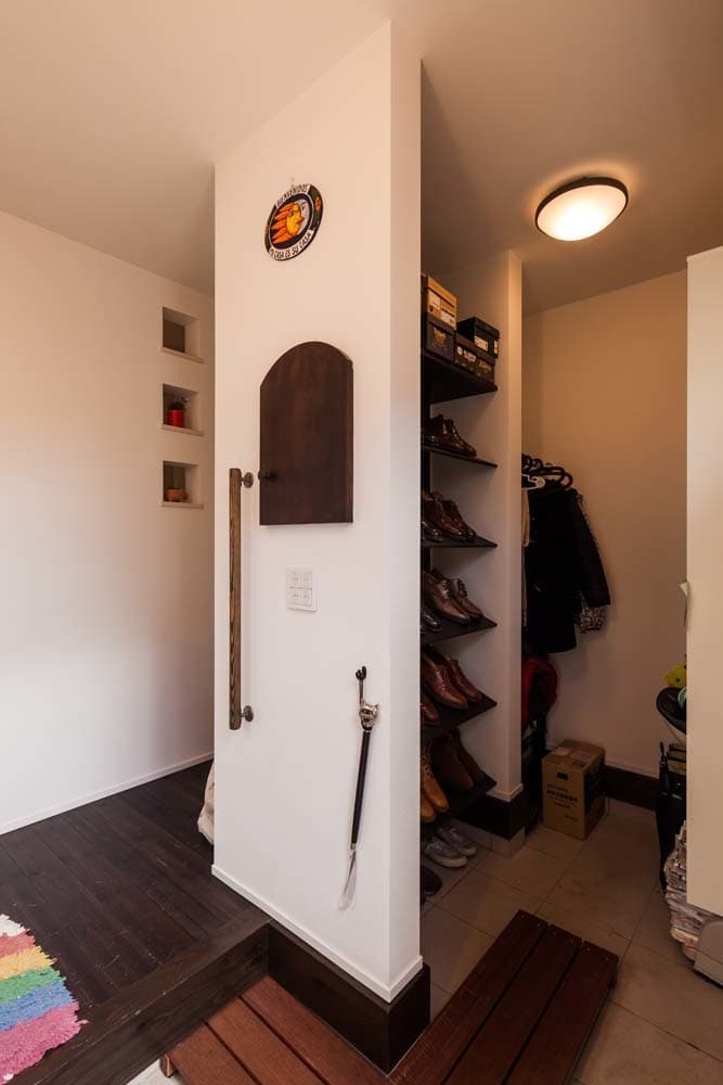 内装は、自然素材を濃い色で統一することで、大人っぽいテイストを醸し出す落ち着いた雰囲気の空間となっています。